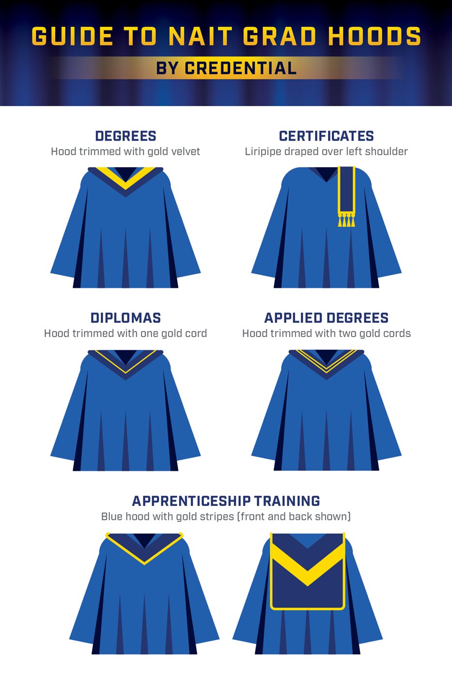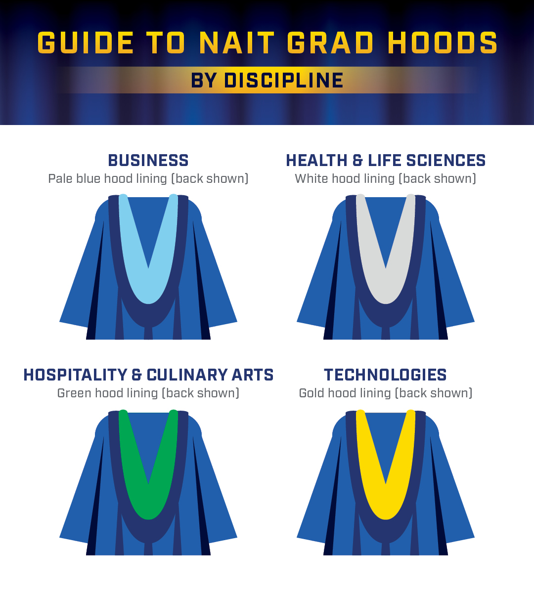 Check out our Guide to NAIT Hoods by Credential and Discipline to see the colour and design you’ll be proudly wearing.